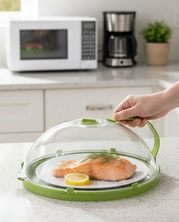 Our guard transforms reheating by combining a moisture-locking steam system with a stay-cool handle to ensure your meals stay tender and your microwave remains perfectly clean.